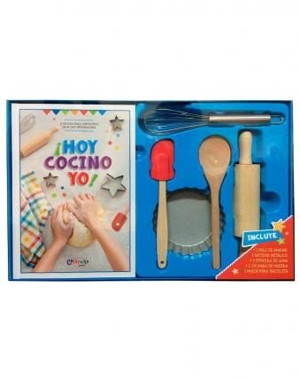 Está presentado en un cofre que incluye palo de amasar, batidor de mano, espátula, cuchara de madera y moldes para tarteleta.